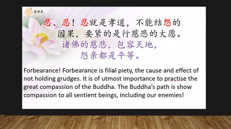 通过故事,真修法师以浅显易懂的方式带领我们了解忍辱的重要性。忍辱波罗蜜是我们凡夫得到安乐生活的重要修行手段,也是学佛必修课程,成佛必经之道。法师还指出忍辱的六个层次:力忍、忘忍、反忍、观忍、喜忍和慈忍。只要我们愿意学习,我们一定会有进步空间。