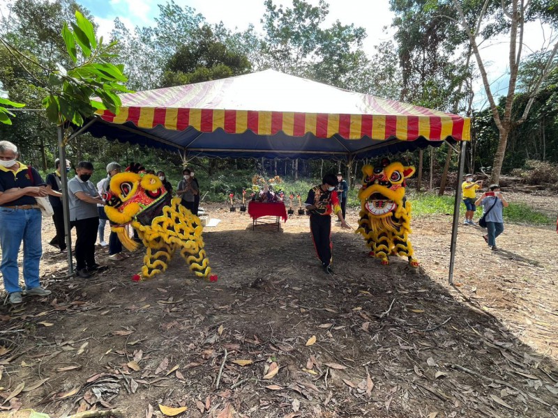 動土儀式上,丹絨馬林中華互助社龍獅團也派出二頭金獅助陣,使到場面更加澎湃,原有寂靜的林地,更顯得朝氣蓬勃,欣欣向榮。