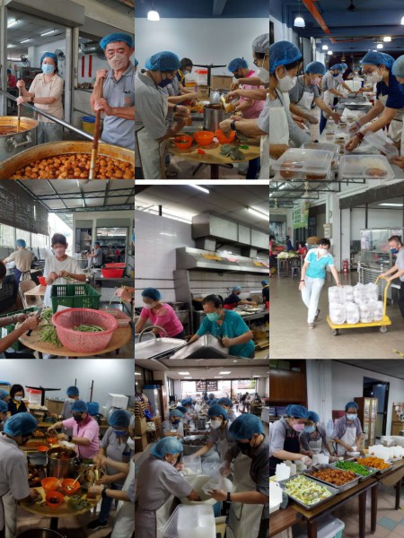 活动前一天,檀香天厨即带领义工菩萨们进行事先的准备,包括洗、切、准备配料、熬制咖哩等;当天清晨开始投入工作,调制酱料、烹煮佳肴,现场可见义工菩萨们一起分工合作,盛饭舀菜、打包装袋,个个忙得不亦乐乎,每一个人的脸上都挂满了欢喜的笑容。