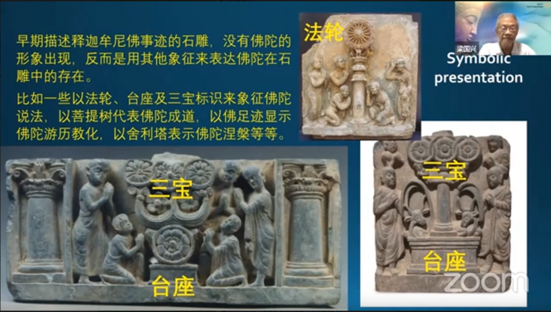 梁国兴居士提到在没有佛像的年代,人们是透过礼拜佛的足印、佛舍利塔、菩提树以及法轮来忆念佛陀。
