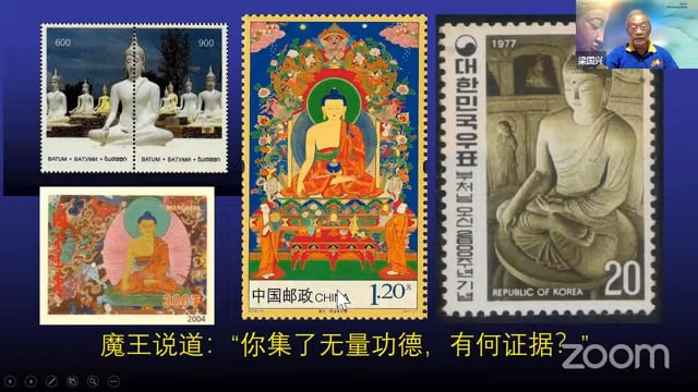 梁国兴居士透过其所收集的印度、尼泊尔、斯里兰卡、泰国、寮国、巴基斯坦、土库曼共和国、阿拉伯叶门共和国、巴统、格瑞那达、马尔地夫、蒙古、西藏、中国、韩国、日本、香港、澳门等地以佛教为主题的邮票来介绍「人天导师」即本师释迦牟尼佛应天人之请从兜率天降生到娑婆世界来度化众生的生涯历程。