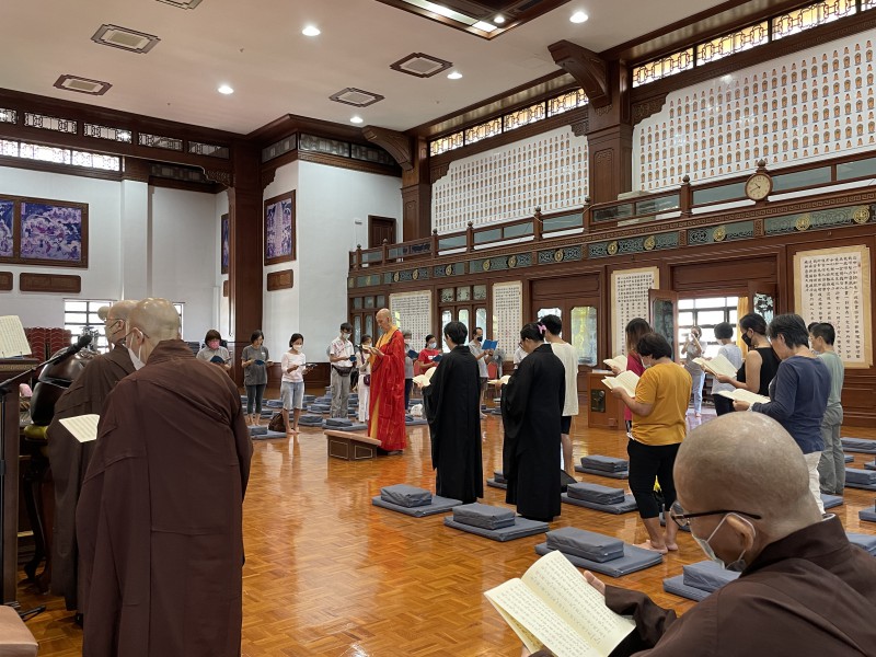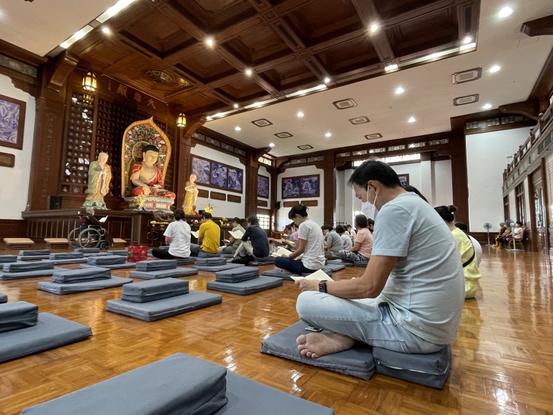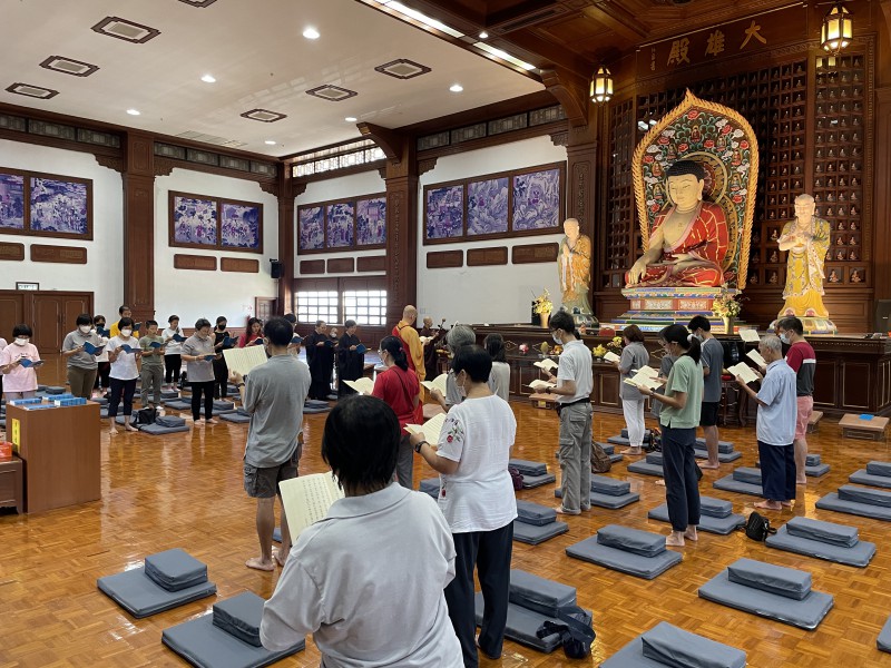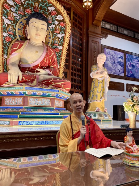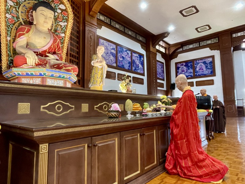 2023年8月30日(农历七月十五)上午10时半,檀香寺于6楼大雄殿举行佛前大供,檀香寺开山唯悟法师亲自主法带领大众恭诵《佛说盂兰盆经》 以及佛法开示。
