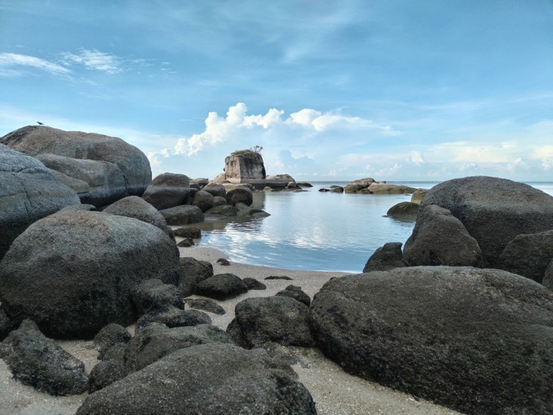 一个风光明媚,美丽的星期天。有蓝天白云碧海沙滩,还有美丽的大岩石、造型奇特的枯树幹舖天蓋地点缀形成了大自然一片美丽景色!感谢天,感谢地让我们有因缘置身于大自然天地中,美色尽在眼前而美不胜收!