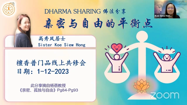 2023年12月1日(星期五)高秀凤居士分享「亲密与自由的平衡点」