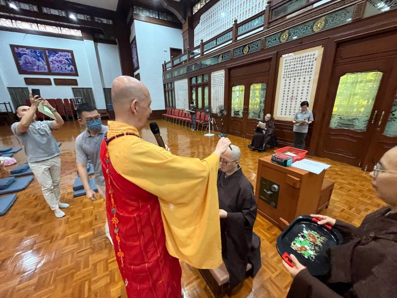 来自印尼棉兰的田美丽居士发心依止檀香寺唯悟法师出家,于2024年5月10日晚上在亲友的祝福下进行圆顶仪式。