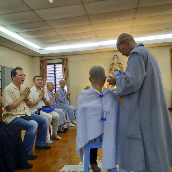 出家典礼于翌日5月11日上午10时在檀香寺6楼大雄殿举行,逾十位从印尼飞来槟城的亲友团,以及檀香寺常住法师﹑义工职员等人出席观礼,仪式隆重庄严。