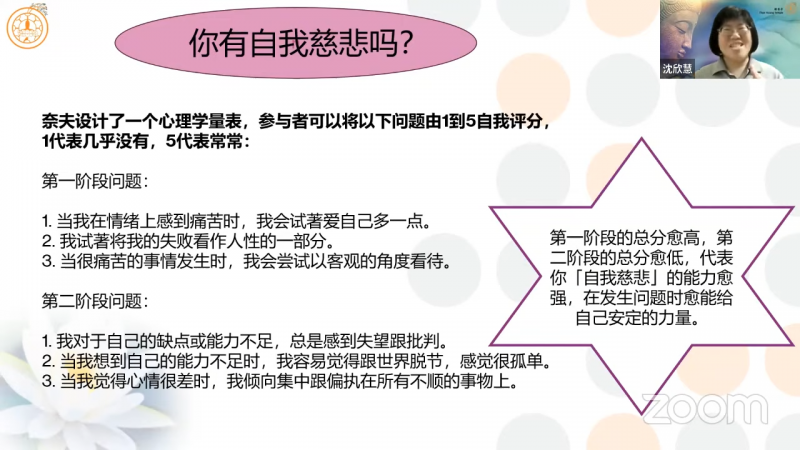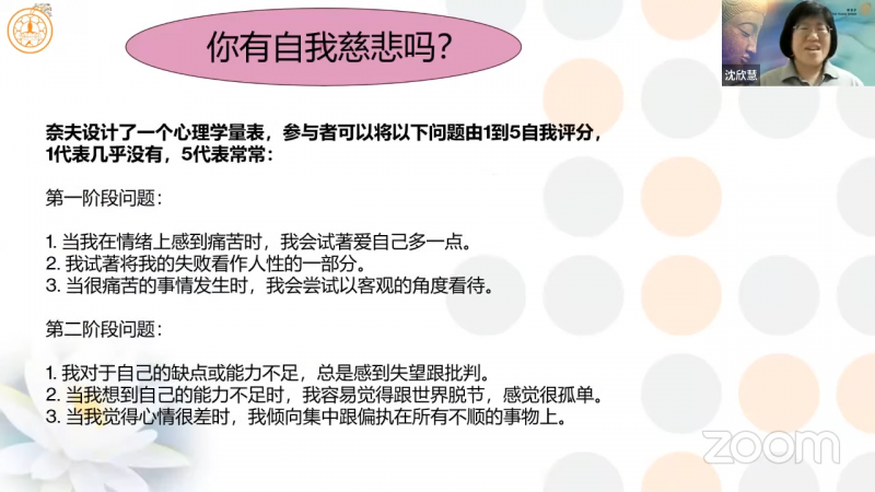2024年7月5日(星期五)沈欣慧居士分享「自我慈悲」