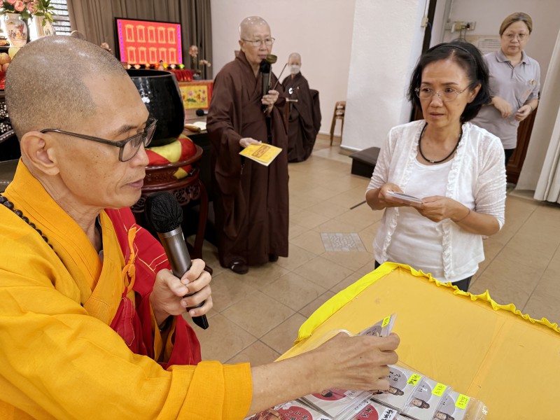 正授过后,真如法师颁发皈依证以及受戒证书予17位戒子。