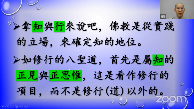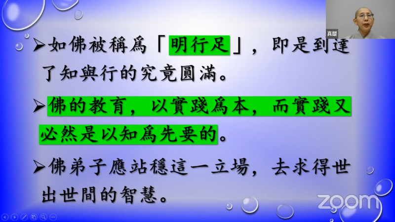佛的教育,以「实践」为本,而实践又必然是以「知」为先要的。