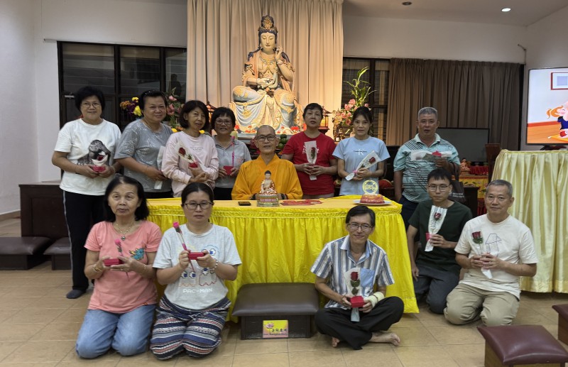 檀香寺于三月十五日晚上八时举办了庆生会。当晚,大悲殿聚集了许多佛友,大家都很开心地参与了这次庆生会。庆生会是大家一起庆祝佛化生日的日子。在庆祝生日开始前,梵呗组的组员带领大家唱诵弥陀偈、念佛号和绕佛。绕佛结束后,真如师父为大家慈悲开示,内容是关于「学佛要福慧双修」。