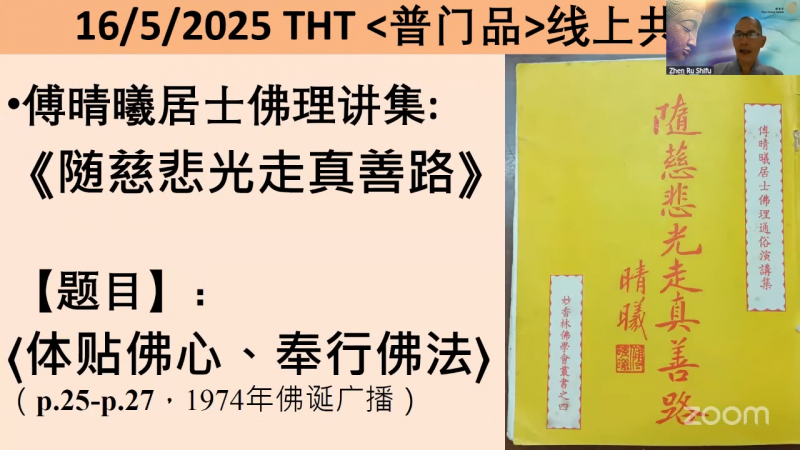 2025 年 5 月 16 日(星期五)檀香寺真如法师慈悲开示「体贴佛心、奉行佛法」