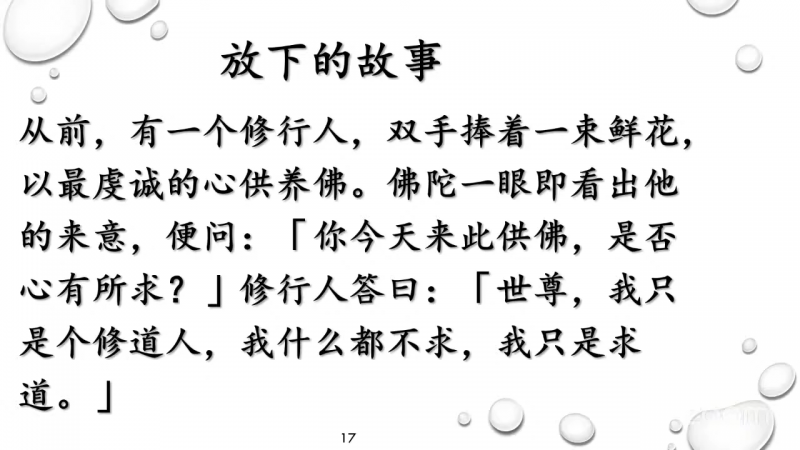 佛陀就告诉他:「好!你既然是来求道,那就放下吧!」