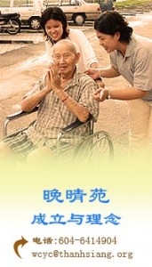 檀香福利晚晴苑是檀香基金会辖下檀香晚晴苑福利会之一个非营利机构,是秉持佛陀的教诲,以发挥慈悲喜舍四无量心而成立的。我们的宗旨是要为老人家建立一个高素质的安老护理中心,提供一 个舒适、温馨、安和利乐之家。今天,年轻力壮的家庭成员都出去工作了,家中就剩下体弱多病的老人家。晚晴苑让这一群孤寂、被忽略的老人家聚集在一起,一同共修念佛,一同闲话家常。这样,儿女们可放心去找生活,老人家也找到了他们的“朋友” 。