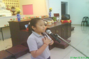 On Friday 27th April 2012, Friday Buddhist Class of Than Hsiang Jing Yuan held the second Buddhist Hymns Competition with an aim to promote interests towards Buddhist hymns among the children. In addition to that, it is hoped that the children will be exposed to more Buddhist hymns and establish a positive outlook on life by learning the ethical and moral values conveyed in the songs.