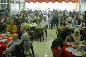 The grand celebration started off at 9 a.m. with a video presentation introducing the Wan Ching Yuen Senior Citizens’ Home, Sungai Petani. This was followed by the singing of ‘Buddha Eulogy’ after which Venerable Zhen Ru and Brother Chen You De, chairman of the organizing committee delivered their speeches. Venerable Zhen Ru urged all attendees to join the Than Hsiang family to work hand in hand for the conviction of creating an environment for "The Young to Learn, The Strong and Healthy to Serve, The Aged and Sick to be Cared For, The Departed to Find Spiritual Destination."