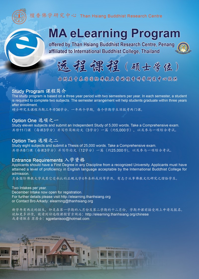 The elearning MA Program run by Than Hsiang Buddhist Research Centre with IBC's Collaboration