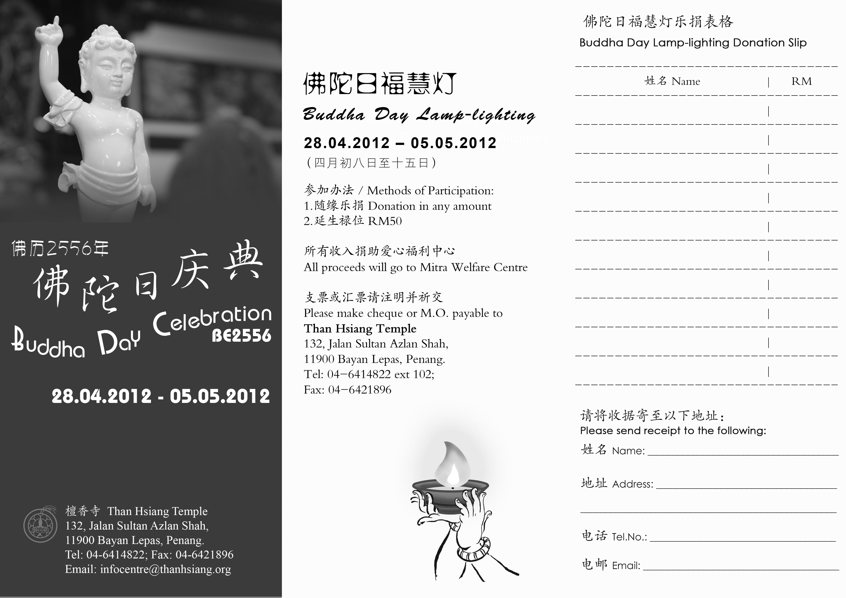 You can take the respective donation slip at our temple. For further enquiries, please call 04-6414822, ext. 102