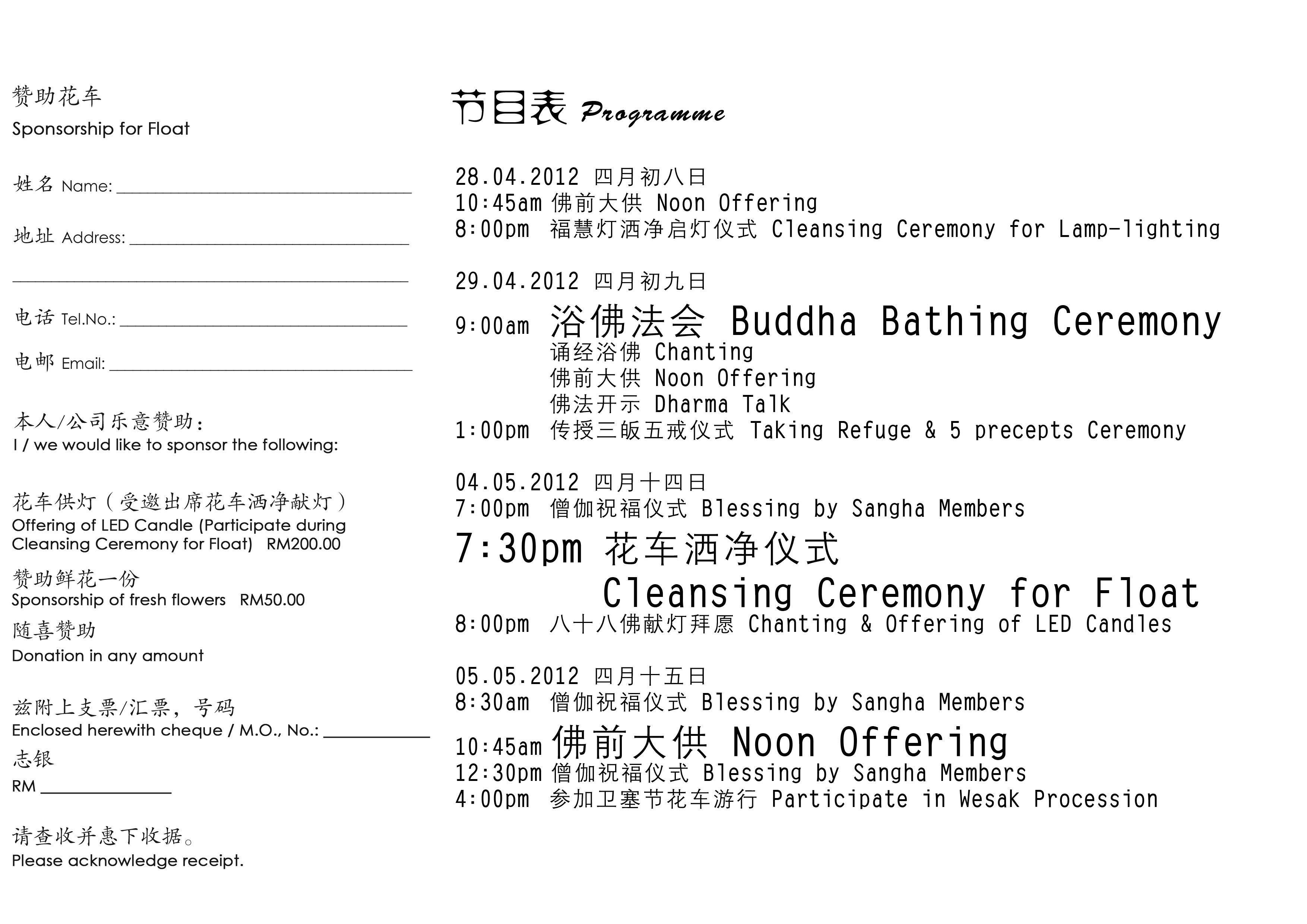 1)Offering of LED Candle(Participate during Cleansing Ceremony for Float): RM200