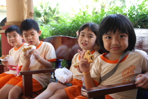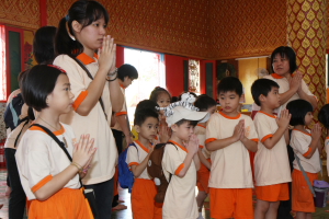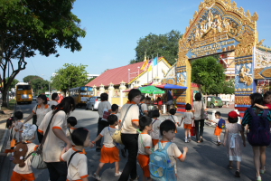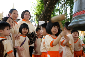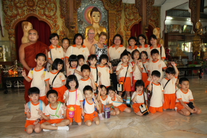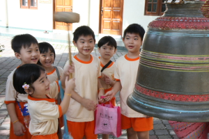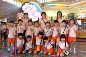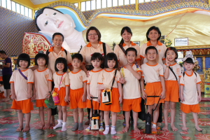On 25th June 2011, Than Hsiang Kindergarten (Farlim) organized a half-day trip which was its first outdoor activity. A group of twenty-three children and seven teachers from the Kindergarten paid a visit to Wat Chayamangkalaram Thai Temple and the Dharmikarama Burmese Temple located in the Pulau Tikus area.