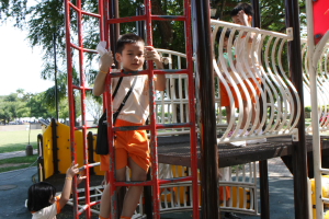 After visiting both temples, we brought the children to the playground in front of the Esplanade. They enjoyed so much playing there that they seemed reluctant to leave.