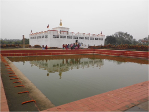 The sacred site of the Buddha’s birth is at the southern end of Lumbini grove. Excavations have revealed a series of rooms and a stone slab which is now believed to mark the exact location at which the Buddha was born.