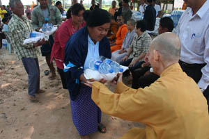 The flooding in Korat province had resulted in the local habitants facing water shortage and electricity disruption. Despite being badly hit by the flood, the college, led by Ven. Zhen Chan wasted no time in distributing relief supplies and disbursing cash tokens to the victims.