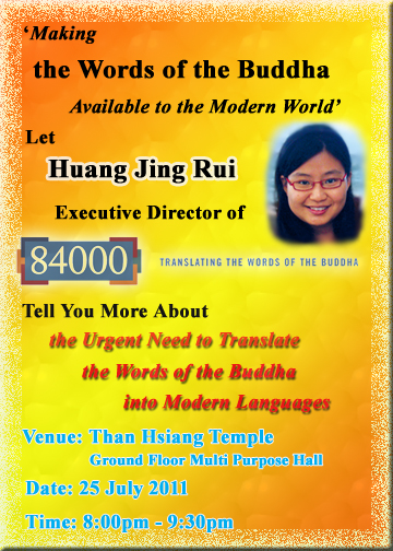 Submitted by seow on Wed, 07/20/2011 - 02:07 Making the Words of the Buddha Available to the Modern World - - 25 July 2011Announcement Log in to post comments 4702 reads