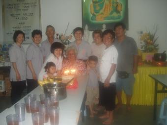 Sharing of some devotees birthday celebrations on different occasion. Nickname, Kai Mah is among the pioneer devotees in Pajam center since the opening seven years ago. Being the "mother" to all of us and the "grandmother" to all our childrens is strong and active physically. She used to advice us "if you have a cold or fever shower with salt water or just drink a cup of warm salt water" thereafter you will be alright. We jointly celebrated her 93rd birthday on November 8th, 2010.