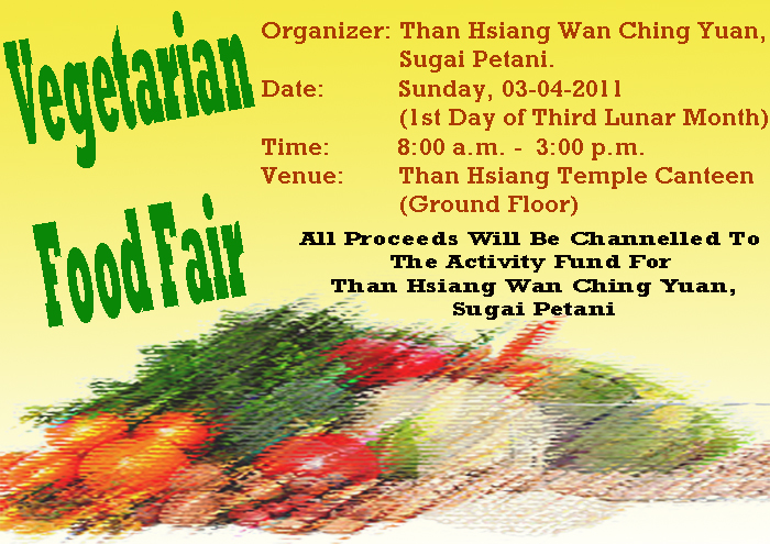 Submitted by seow on Sat, 03/26/2011 - 03:20 Vegetarian Food Fair on 3 April 2011Announcement Log in to post comments 5228 reads
