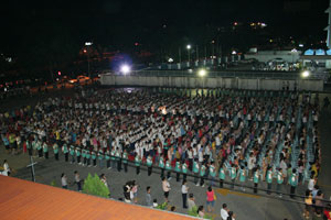 After homage was paid to the Triple Gem, the lights were collected and sent to the front of the stage and arranged to form a giantic 2551 with two Buddhist swastikas at each end. Thus ended an evening of great religious significance to the Buddhist devotees in Than Hsiang Temple.