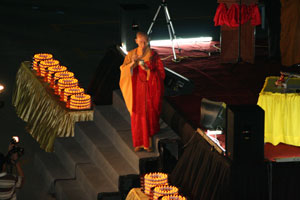 In his address, Venerable Wei Wu thanked YAB Chief Minister of Penang and other distinguished guests for their kind presence. He said the ceremony of lighting 2551 lights was to remind ourselves to practice both merit and wisdom. He shared the inspirations and blessings from Bodhgaya, when he was there in February for a conference hosted by the Indian government to celebrate the Buddhist era 2550. He mentioned that the grandson of Mahatma Gandhi, Shri G. K. Gandhi praised the Buddhist teachings of compassion (karuna) and loving kindness (maitri) and urged the politicians to care about the sufferings of the people.