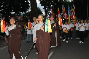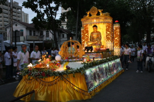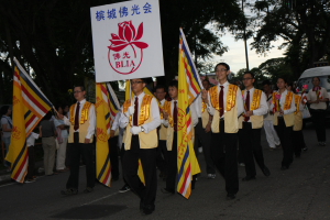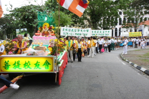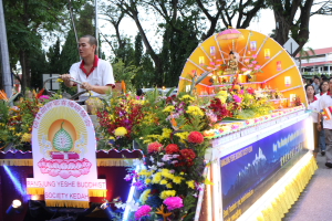 The float procession started at the Association around 6 p.m. The contingent which included 39 floats and members from 40 Buddhist organisations comprised 10,000 people.