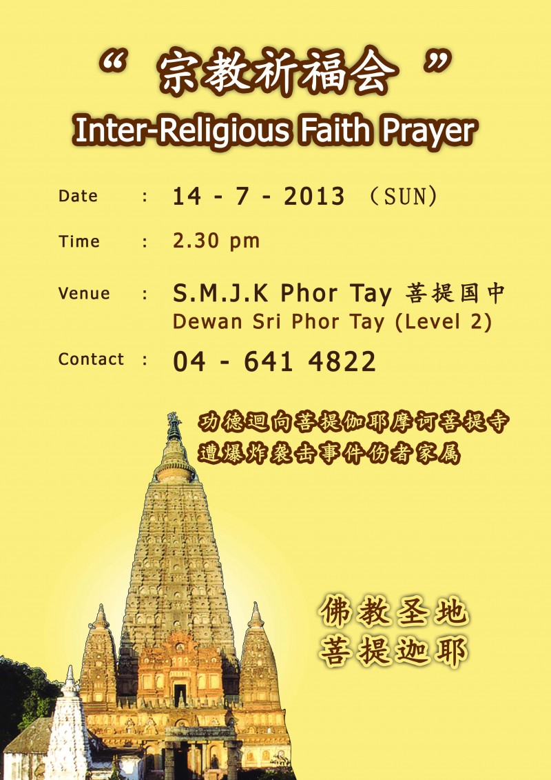 • to pray for the early recovery of the victims and their family of the bombing at Bodhgaya, the most important pilgrimage site for Buddhists from all over the world on July 7, 2013