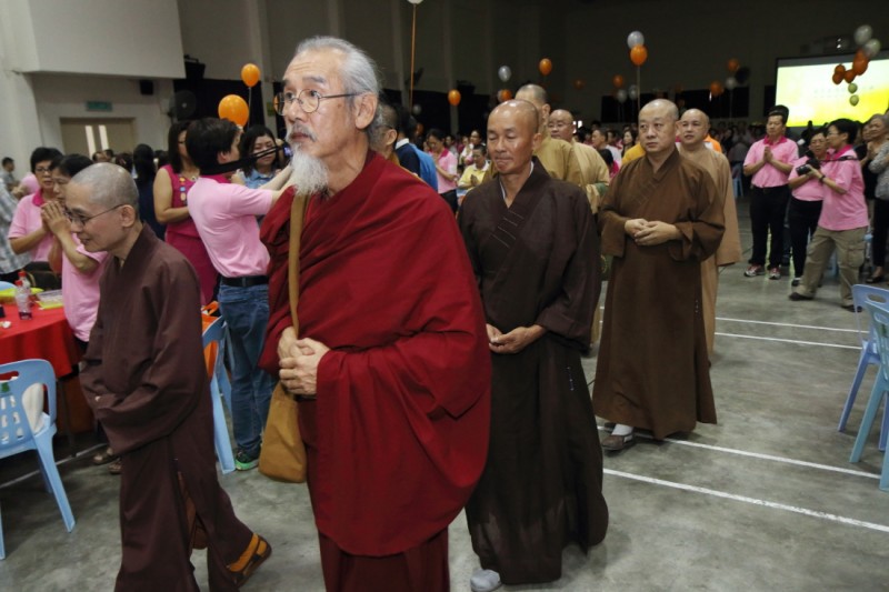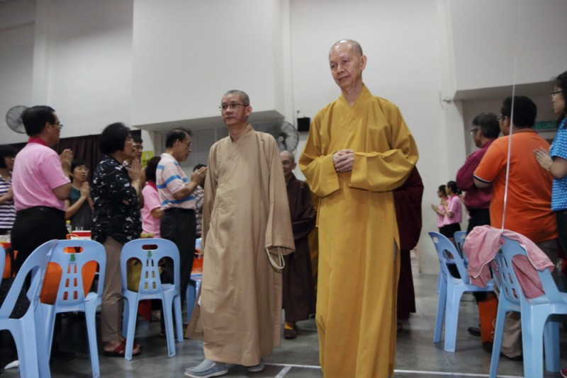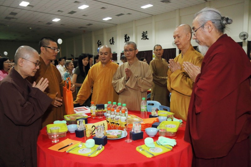 At 6:30pm streams of devotees started to flow into the hall to get their food which had been painstakingly prepared by cooks and volunteers of Than Hsiang. The Than Hsiang Choir Group sang Serene Sandalwood which is the Than Hsiang theme song before the abbot Venerable Wei Wu’s speech in pre-recorded video was played. In his speech the abbot illustrated to the delightedly impressed audience the thriving success of Than Hsiang’s endeavor in various aspects especially the latest development at national and international levels.