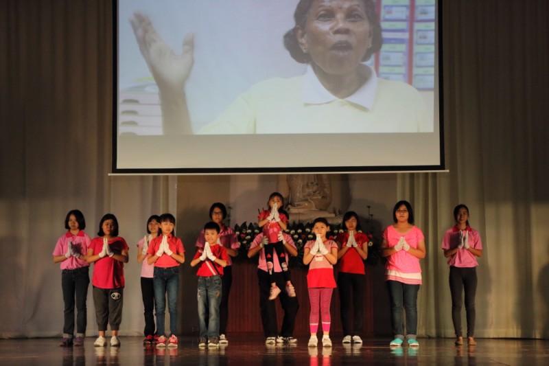 Coming up next were stage performances including Laoshi Nianforen (the Honest Buddha name recitation practitioner) sung by Foong Kong Chai, a joyful Wan Ching Yuen resident; a funny and lively dance performance by the children of the Than Hsiang Kingdergarten; and a song interpreted in sign language by students of the Than Hsiang Sunday Dharma Class. These performances were interwoven with playing of video clips introducing Than Hsiang’s development. The clip which showed the life of happy Wan Ching Yuen residents was especially interesting and impressive. Thanks to all who had been involved in the making of the video.