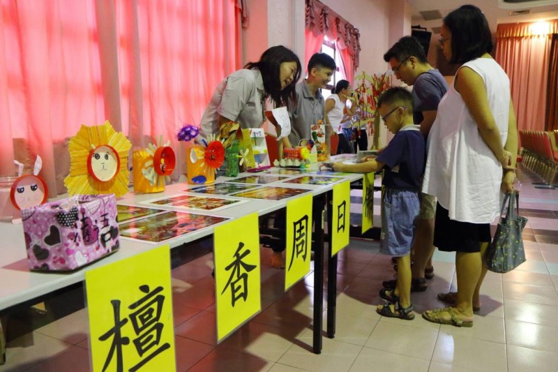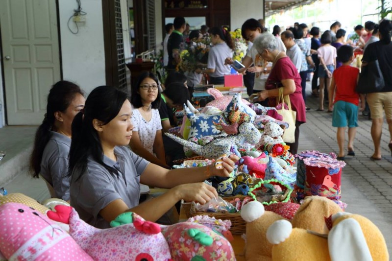 Meanwhile at the Multipurpose Hall on Level 5, beside ‘Buddha bathing’ and Sangha blessing there were exhibitions by Than Hsiang’s education and welfare sections. They included Mitraline Counseling Service, Than Hsiang Sunday Dharma School, Than Hsiang Youth Circle, International Buddhist College (IBC) E-Learning Program and handy craft making by Than Hsiang Kindergarten teachers.