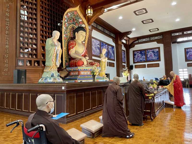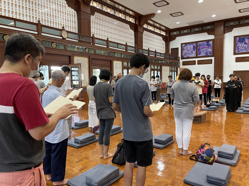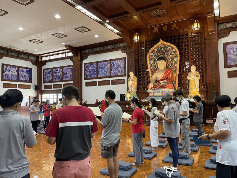 On 30 August 2023(the fifteenth day of the seventh month) at 10.30 am, Than Hsiang Temple held the Noon Offering in Main shrine Hall on the 6th floor. The founder of the temple, the most venerable Wei Wu, headed the chanting of the Ullambana Sutra and sharing the dhamma to the devotees.