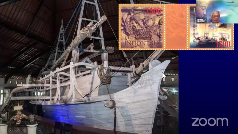 This is a scene from the Book of Parables, depicting a large ship. An European captain visited here and was greatly impressed by the ship. He thought it was the highest masterpiece of Indonesian navigation technology in the 8th century. So he applied from the Indonesian government to replicate this ship. He sailed across the Indian Ocean to the Cape of Good Hope in Africa. The ship is now housed in the Borobudur Museum.