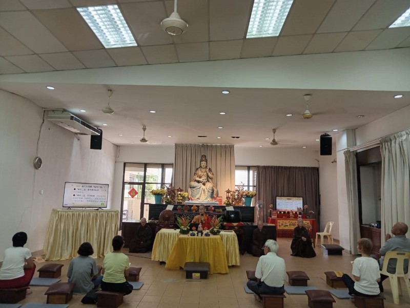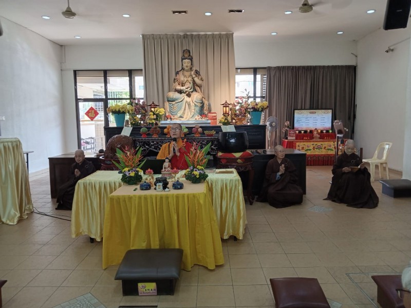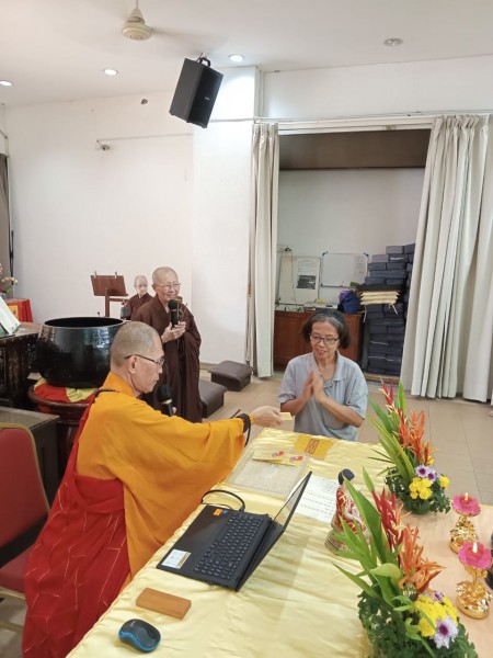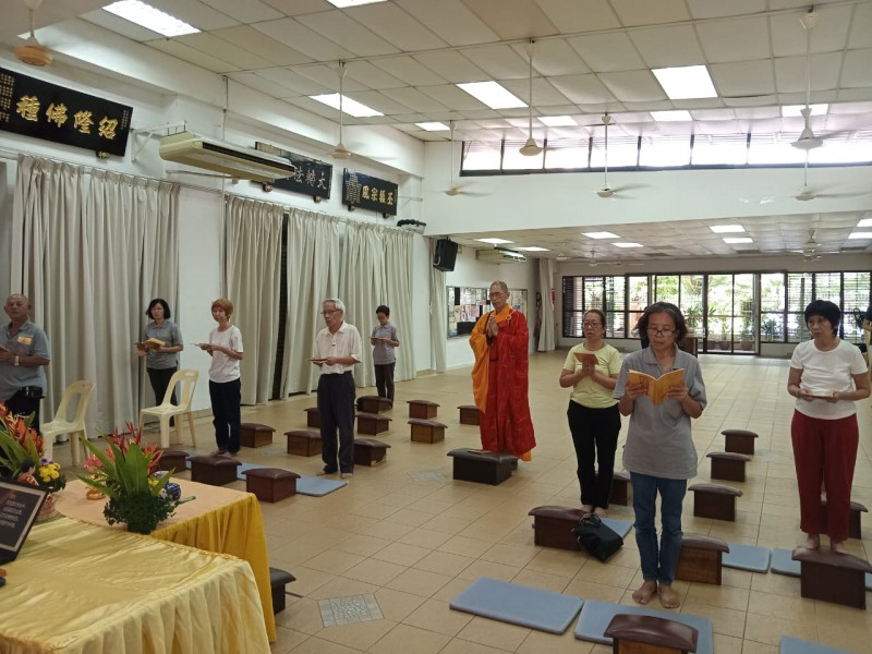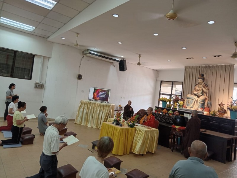 The participants under the guidance of Venerable Zhen Ru recited their vows and repentance followed by taking their five precepts.