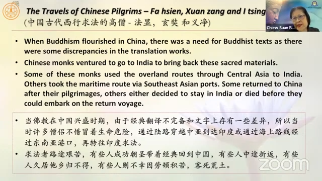 The narratives of Fa Hsien, Xuan zang and I tsing make them more famous than other travelers and provided the Chinese Buddhist an opportunity to envision the sacred Buddha land.