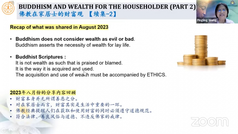 Teaching Assistant of IBC, Sis Wong Ping Ling sharing "Buddhism and Wealth for the Householder (Part 2)"