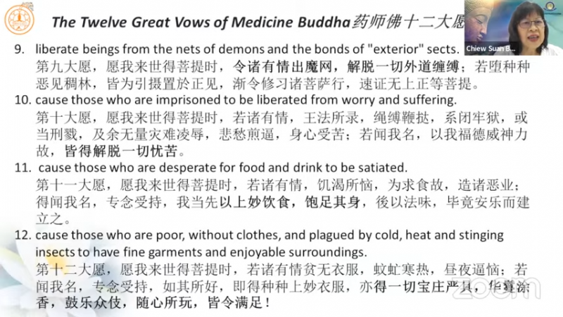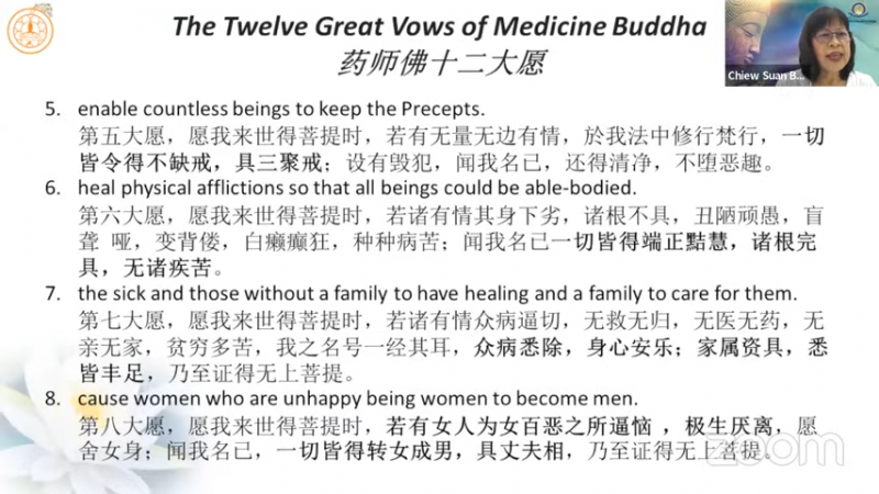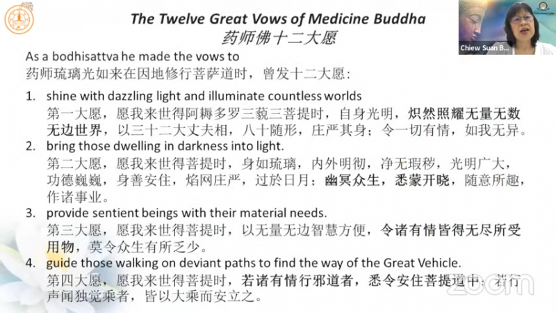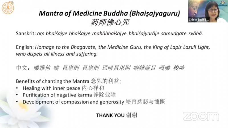 Teaching Assistant in International Buddhist College, Sister Chiew Suan Bee sharing “ Sutra of Medicine Buddha”