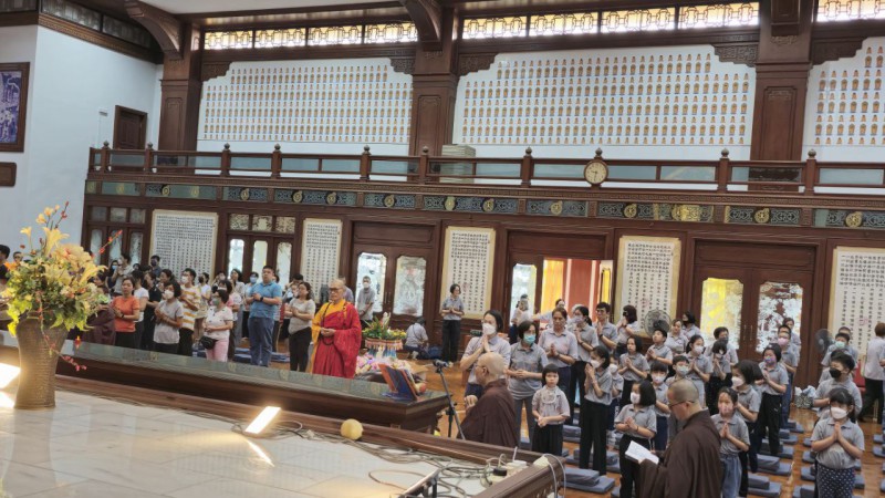 Than Hsiang Sunday Dharma School students and their parents arrived early in the morning. They were guided by their foster dharma parents to join the ceremony with the public and the volunteers.