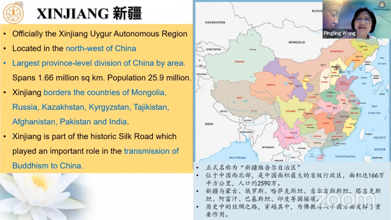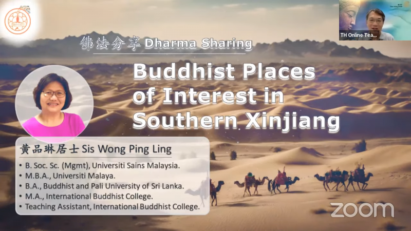 Teaching Assistant of IBC, Sis Wong Ping Ling sharing "Buddhist Places of Interest in Southern Xinjiang"