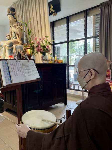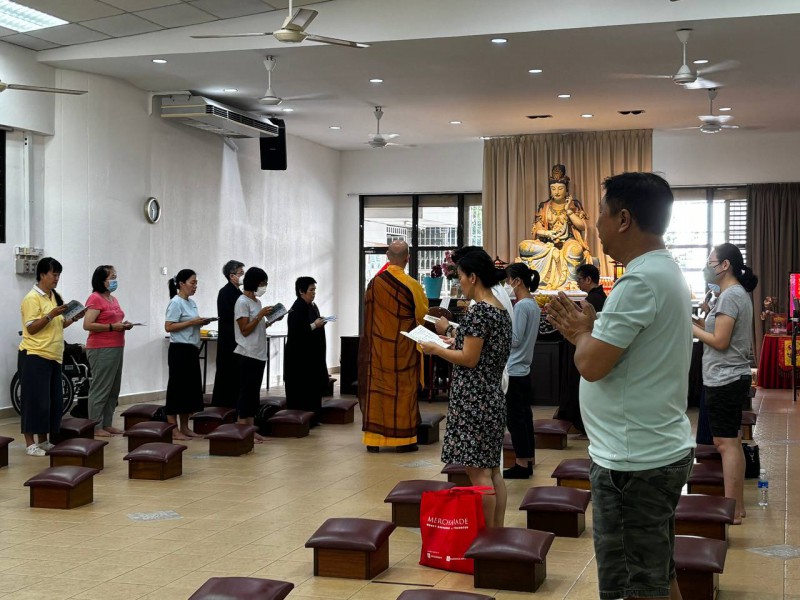 August 6, 2024, which is the 3rd day of the 7th lunar month, marks the 26th anniversary of the passing of Elder Xiu Jing. Elder Xiu Jing was the preceptor of Master Wei Wu, the founder of the Than Hsiang Temple. The monks of Than Hsiang Temple, led by Master Wei Wu, recited a sutra in memory of the venerable monk at 10 a.m. in the Great Compassion Hall. This was followed by offerings at the Buddha's altar, after which they moved to the ancestral hall to transfer the merits in front of Elder Xiu Jing's memorial tablet.