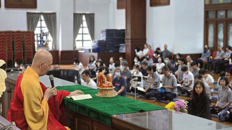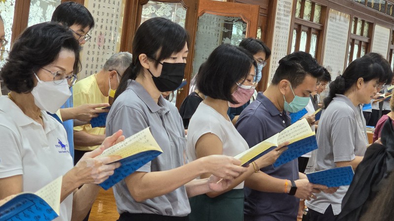At 10:30 a.m., Ven. Wei Wu, the founder of Than Hsiang Temple, led the congregation in chanting the "Buddha Speaks of the Ullambana Sutra." The devotees recited the scriptures devoutly, with each word resonating with respect and mindfulness.