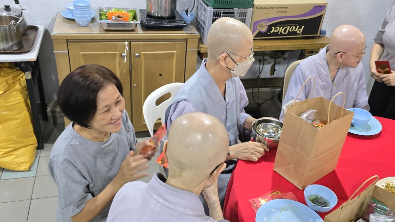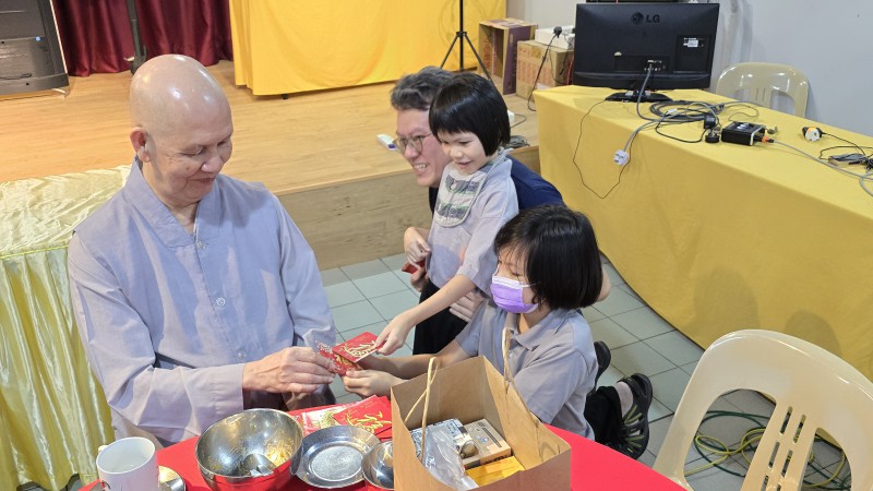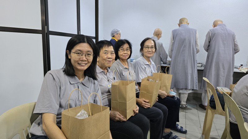 After the chanting ceremony concluded successfully, Ven. Wei Wu was invited to give a dharma teaching to the congregation. He explained the origin of Buddha's Joyful Day and elaborated on the differences between the Zhongyuan Festival and the Ullambana Festival. During the Buddha's time, Maudgalyayana, a disciple of Shakyamuni Buddha, saw with his divine powers that his mother was suffering in the realm of hungry ghosts. Filled with compassion, he tried to offer her food, but when she opened her mouth to eat, the food turned into burning coals. Helpless, Maudgalyayana sought the Buddha's guidance on how to save his mother. The Buddha informed him that individual efforts alone could not save her; only the collective merit from offerings to the Sangha could help. The Buddha instructed Maudgalyayana to prepare abundant offerings, such as food, five kinds of fruits, pots, oil lamps, bedding, and sleeping mats, to offer to the Sangha on the 15th day of the seventh month (the last day of the monastic summer retreat). This day not only marks the completion of the summer retreat but is also a time of great joy for all Buddhas, as the Sangha's diligent practice during this period reaches fruition, bringing joy to all Buddhas and Bodhisattvas. Maudgalyayana followed the Buddha's instructions with joy, and as a result, his mother was liberated from the realm of hungry ghosts.