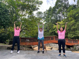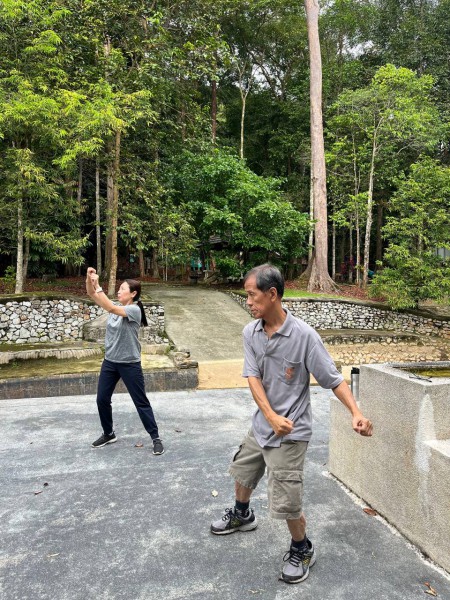 After the talk, before leaving the forest park, Zhen Ru Shifu led everyone along the jungle tracks to admire more trees and the beauty of nature. Interestingly, there was a “friend” in the park—a dog we named Xiao Huang—who joyfully followed us, exercising, taking photos, and listening to Master’s teachings, leading the way along the mountain paths until we left.