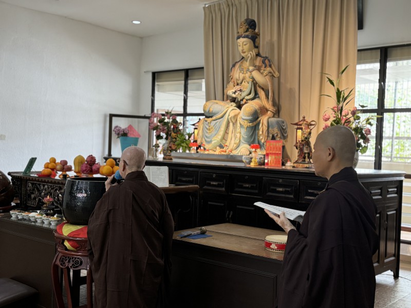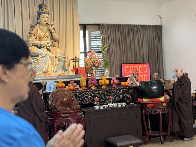 On November22, 2024 at 10am, Than Hsiang Temple held a grand Offering before the Guan Yin statue at the Da Bei Dian. After that the devotees, led by the monks, proceeded to the Ancestral Hall to chant Sutras and transferred the merits in front of Jing Xian’s memorial tablet.