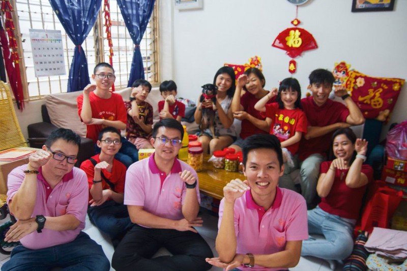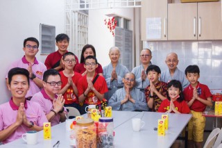 After the Dharma talk concluded, the Venerable led everyone to a dedication ceremony, praying that everyone would have a joyful and healthy new year, with increased wisdom and blessings, and be filled with the joy of Dharma. Then, the Youth Group went to the female monastic community to pay New Year respects to all the nuns. Besides that, they visited the old folk's home at Wan Ching Yuan. Afterwards, the Youth Group proceeded to visit eleven families in their homes to offer New Year greetings and gifts of fruit, distribute Buddhist scriptures, chant blessings, and share auspicious wishes, taking photos with each family.